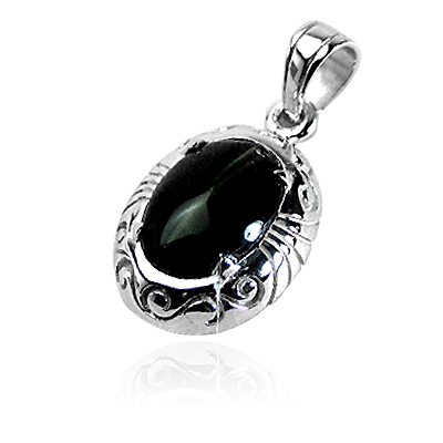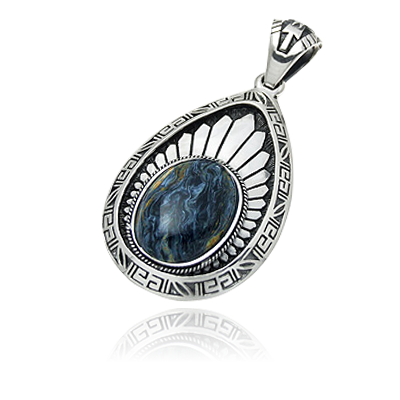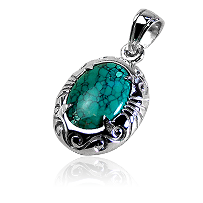 シルバー925(Silver925)とワイルドホースの天然石を使用した、ストーンペンダントトップ。アラベスクが施されており、フェザーでストーンを部分的に覆っているフレームが特徴。
