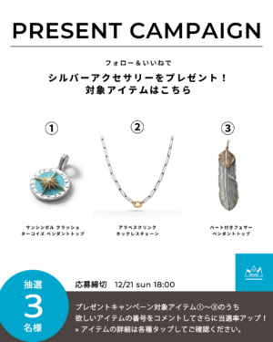 今年一年の感謝を込めて、公式Instagramをフォロー&対象投稿に「いいね」してくださった方の中から抽選で3名様へ、人気のジュエリーアイテムをプレゼントいたします。